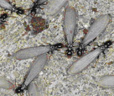 *Termite swarmers are black or brown with clear wings and emerge from soil or infested wood, usually in the